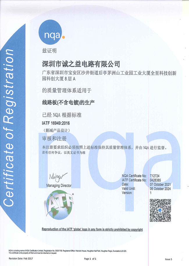 深圳诚之益电路NQA证书